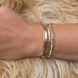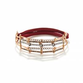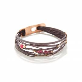 Mix bracelet in 18k rose with fine make brilliant-cut diamonds 0.45ct and 2 plaques, ending to thick cords on a big clasp.