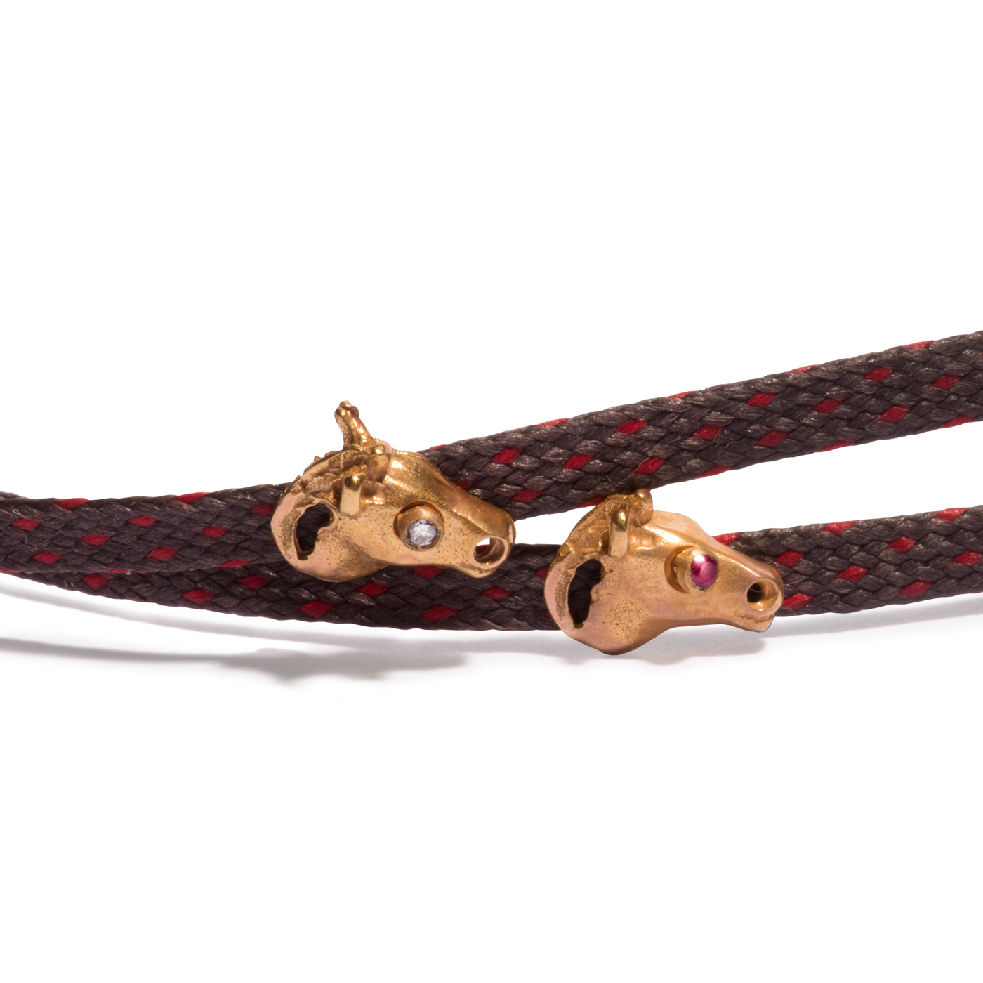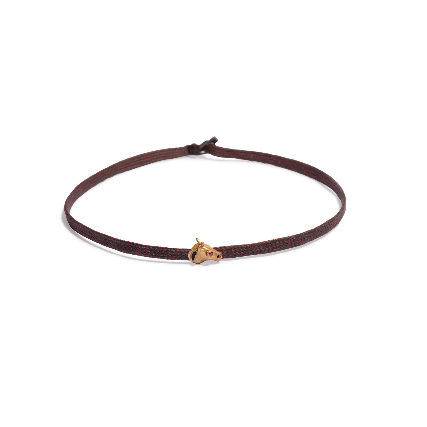 Bracelet in 18k gold with a ruby 0.005ct and closure in 925 sterling silver black platinum plated