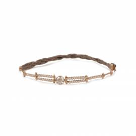 Rivière bracelet in 18k rose gold with black diamonds 0.12ct, barret chain parts and a little four leaf clover. Ending with Braided cords.