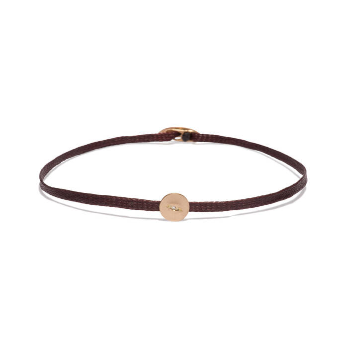 Bracelet in 18k gold with a fine make brilliant-cut diamond 0.02ct and burgundy thick cord.