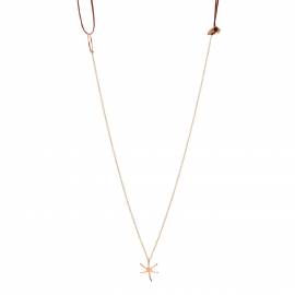 Necklace in 18k rose gold with a turquoise and a coral on chain.