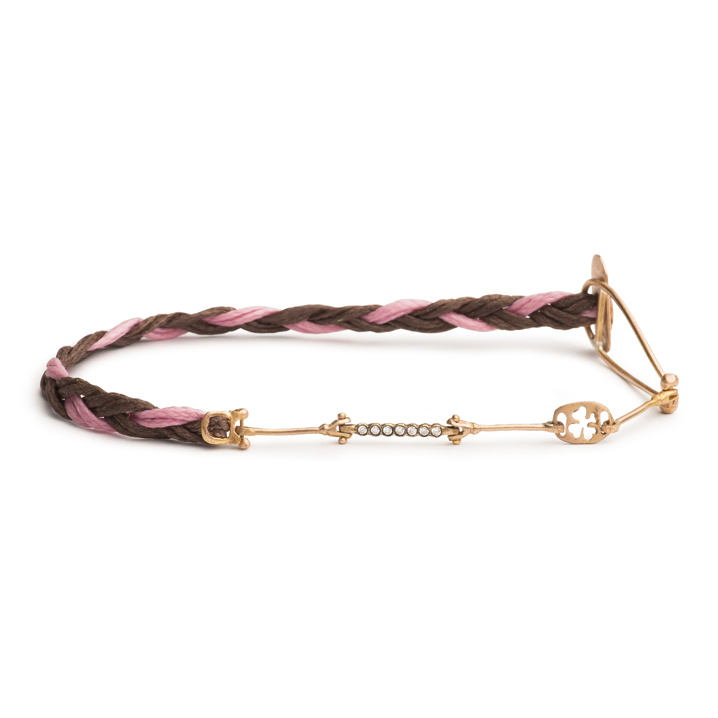 Bracelet in 18k gold with fine make brilliant-cut diamonds 0.04ct and braided cords.