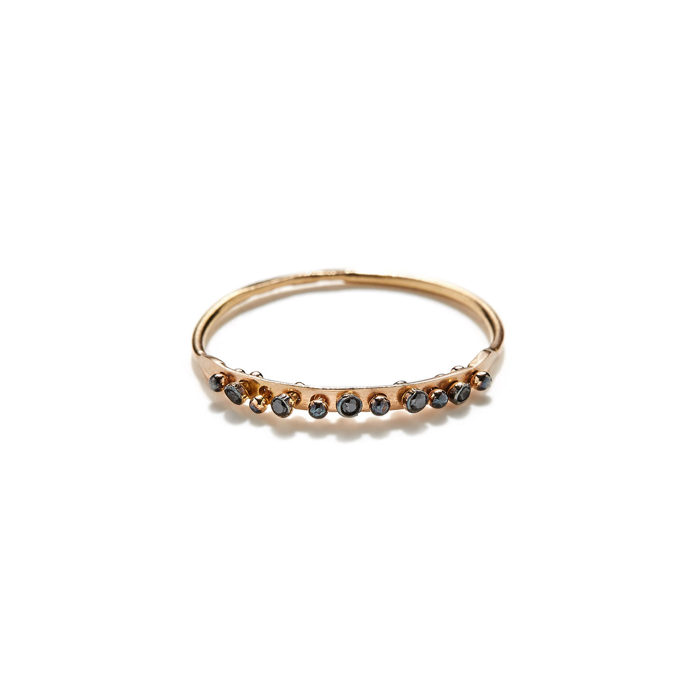 Stackable ring handcrafted in 18k rose gold with black platinum plated details and fine make brilliant-cut black diamonds.